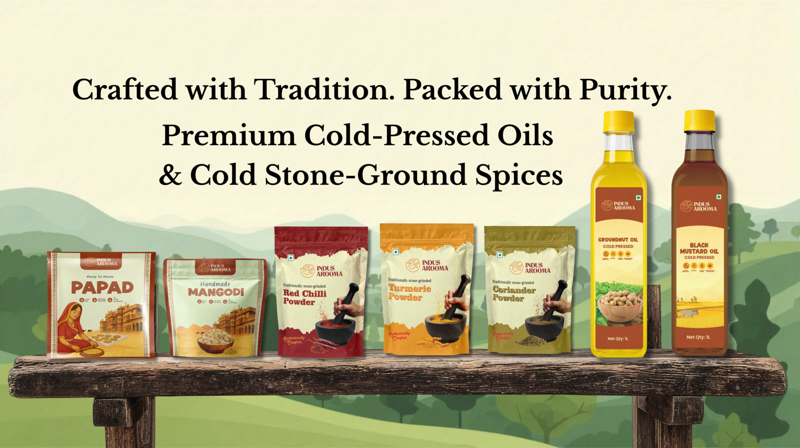 At Indus Arooma, we bring you the essence of nature — untouched, unaltered, and full of life. Our range of 100% natural spices and cold-pressed oils is crafted with deep respect for Indian traditions and authentic purity.